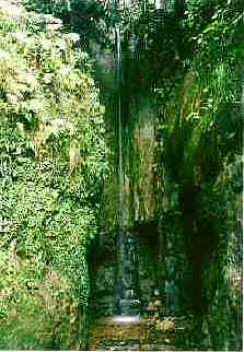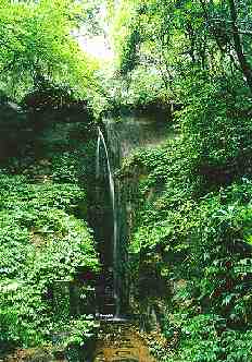 成因:湧水型の滝。自然の滝を掘り込んで改造、導水し修行場として作成したもの。