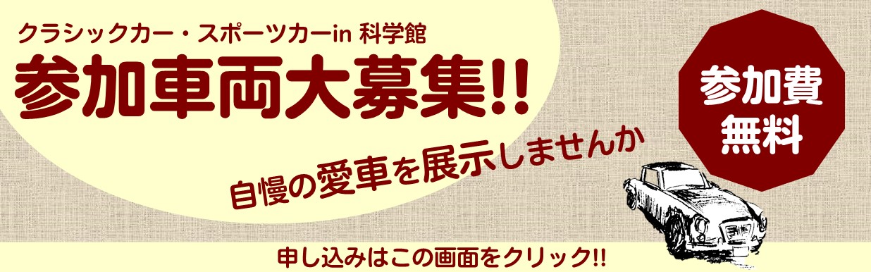 令和8年3月に開催する「第13回クラシックカー・スポーツカーin科学館」の参加車両募集についてお知らせします。