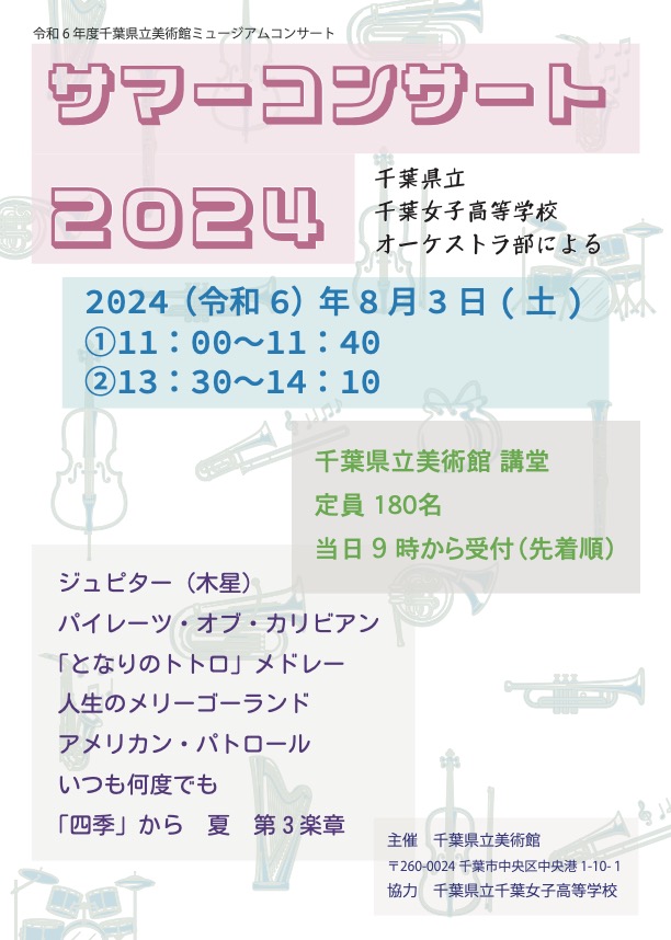 サマーミュージアムコンサート 美術と音楽との触れ合いを通して、美術に対する親しみや芸術・文化への関心を深めるとともに、美術館の新たな魅力を引き出します。美術館でコンサートを鑑賞する特別な時間をお楽しみ‥