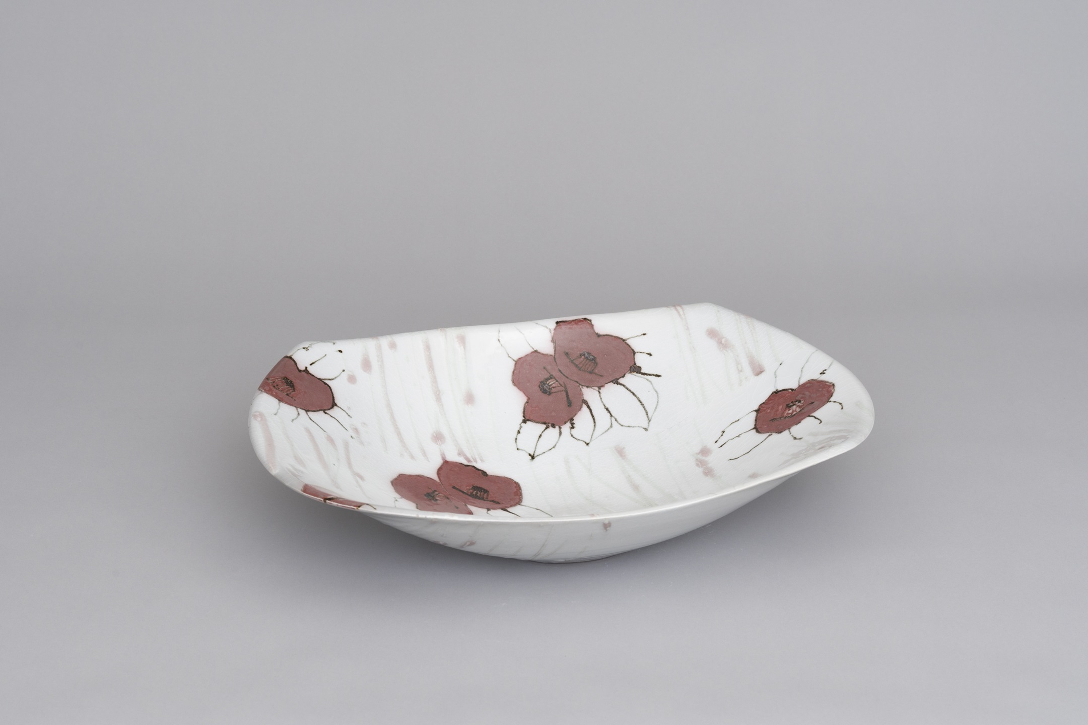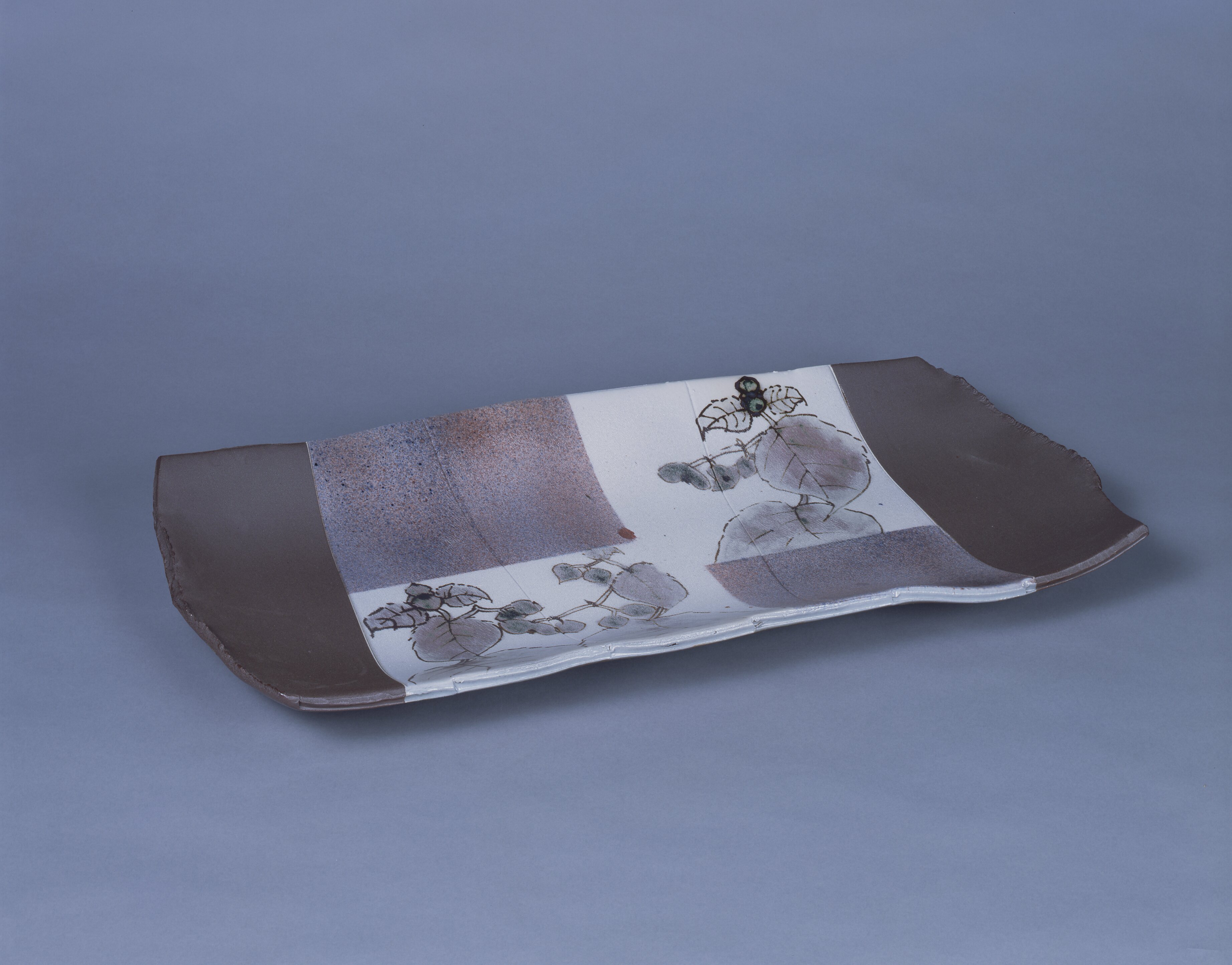 鉄絵秋海棠文長皿 2003年 33×66×6㎝、兵庫陶芸美術館蔵