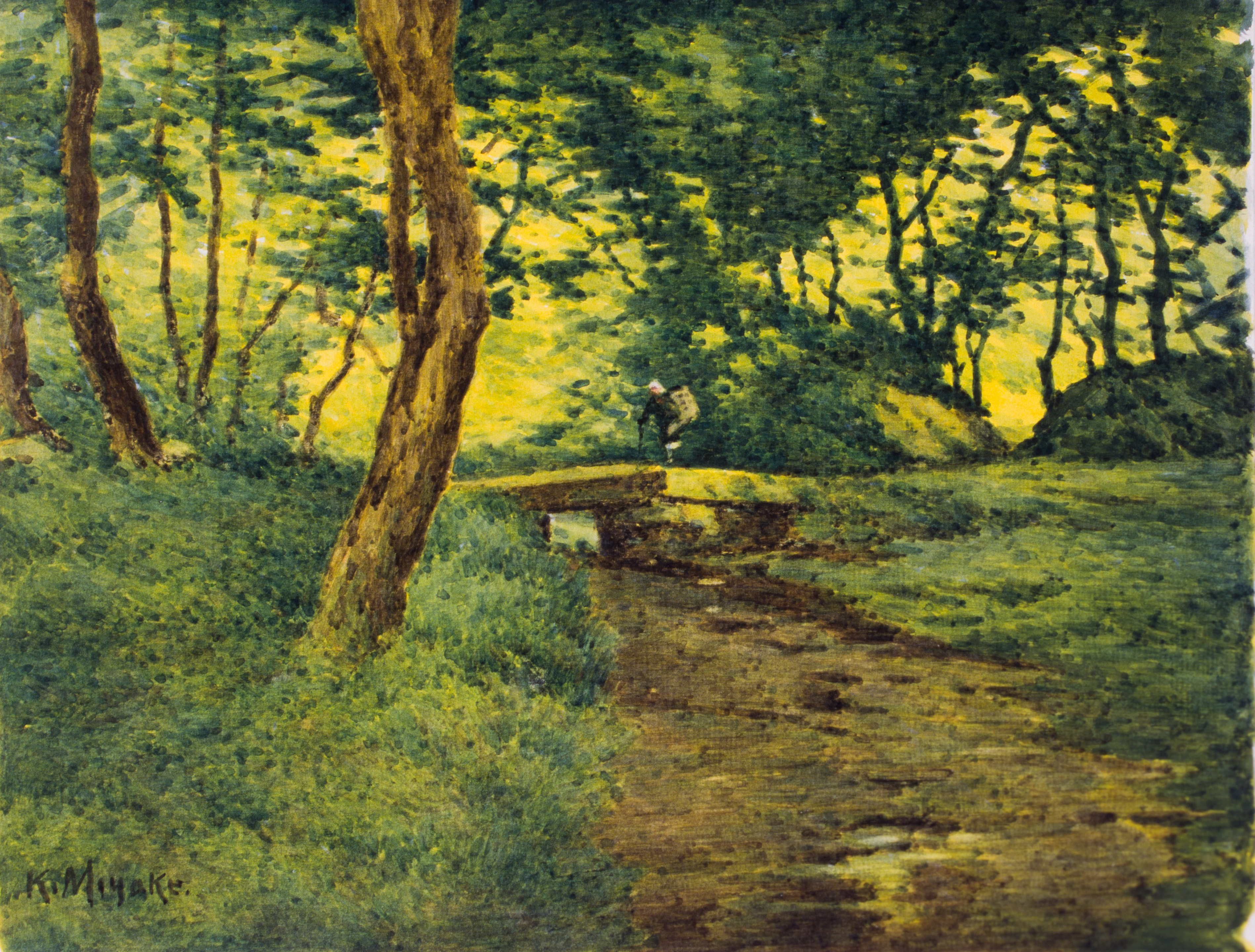 三宅克己《駿州三嶋在の緑陰》1947(昭和22)年、水彩・紙