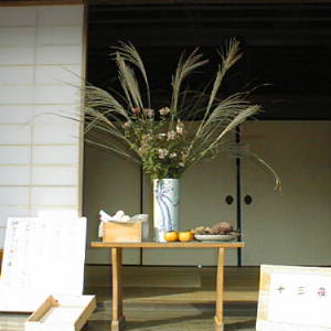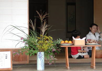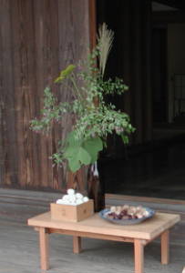 | 【十五夜と同様に、ススキ、月見団子、ゆでた枝豆、里芋などを月に供える。】 わが国では、古くから秋の名月を鑑賞する「月見」の風習があります。これは中国から伝わったといわれ、古くは上流階級の風流な遊びのひとつとされていましたが、江戸時代になると、庶民のあいだにも広まりました。 旧暦8月15日の「十五夜」は全国いたるところで行われていましたが、これについで多かったのが、旧暦9月13日の月見「十三夜」です。十五夜・十三夜ともに「芋名月」、あるいは「栗名月」、「豆名月」とよばれ、団子のほかに里芋や栗、豆などの畑作物をそなえ、月にその収穫を感謝する日とされていました。またこの日、月見団子を子供は自由に盗み歩いてもよいとする風習が全国に見られます。 |