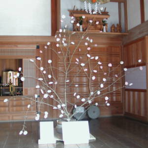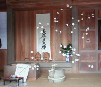 | 【1月15日ころに行われ、農耕儀礼的な行事が多い。扮装した村人が家々を回る、害鳥 獣を防ぐ呪術、火祭り行事、農作物の予祝儀礼、卜占儀礼などが行われる。】 月の満ち欠けによる旧暦(太陰暦)では、新月を1日としていました。しかし、日本では古来より満月ををもって1日とする考え方がありました。中国の暦法にならって官暦では前者を採用するようになりましたが、後者にもとづいて行事を行うところもありました。その結果、年の始めも1日の正月、15日の正月が並存することとなりました。これがやがて大正月、小正月と呼ばれるようになったと言われています。 |
