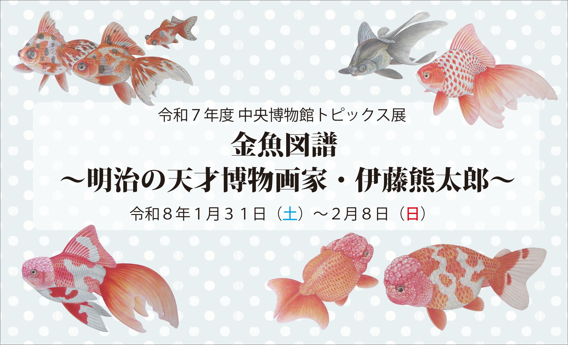 明治中期から昭和初期にかけて精緻な博物画を数多く描いた画家、伊藤熊太郎の『魚譜』を中心に代表的な「魚類図鑑」などの作品を紹介します。『魚譜』は31枚の金魚、鯉、鮒、メダカの肉筆画からなる明治36年(1903)の作品です。