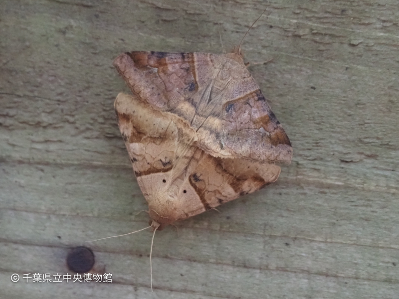交尾中のペアが散水栓の木箱にとまっていました。上が雌、下が雄だと思われます。幼虫はマメ科やイネ科植物の葉を食べます。