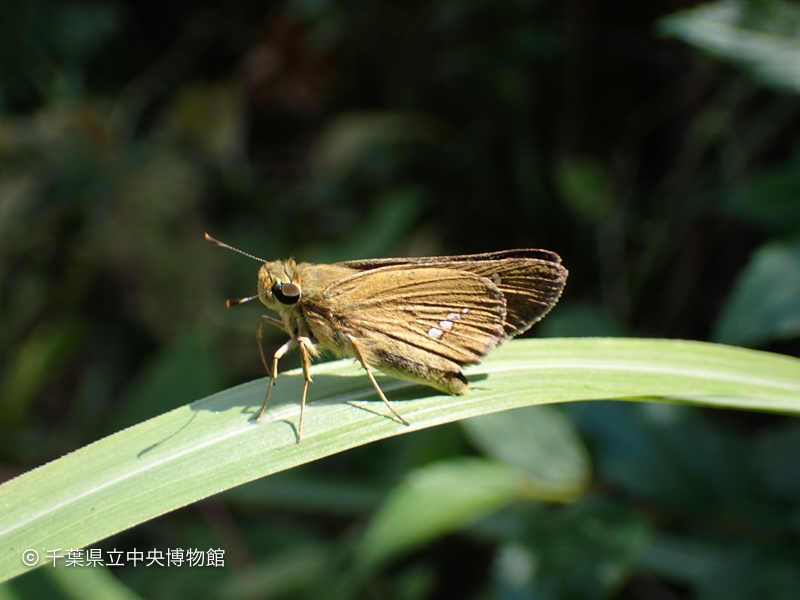 アズマネザサの葉にとまっていました。幼虫はササなどのイネ科植物の葉を食べます。