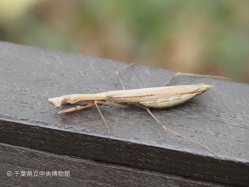 コカマキリのメスを見つけました。大きな腹が重そうです。生態園内では3種の在来カマキリが記録されていますが、コカマキリは一番少ない印象があります。