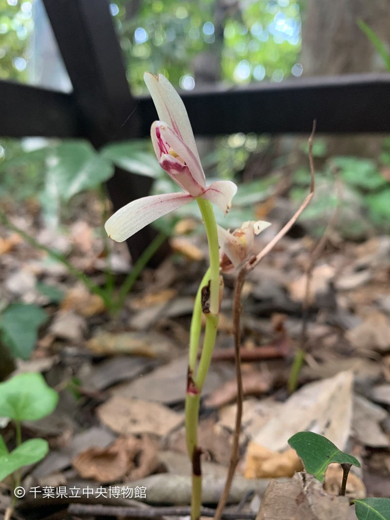 生態園の野鳥観察舎へ向かう階段の手前(杭番号A493)でマヤランが咲いていました。