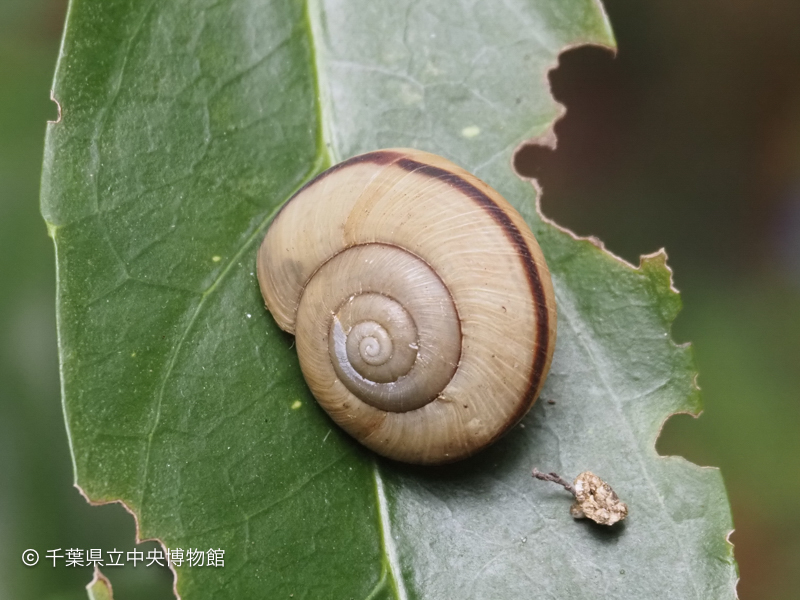 湿地林で見つけました。左巻きの殻をもつカタツムリです。