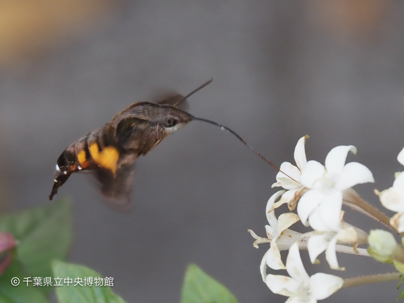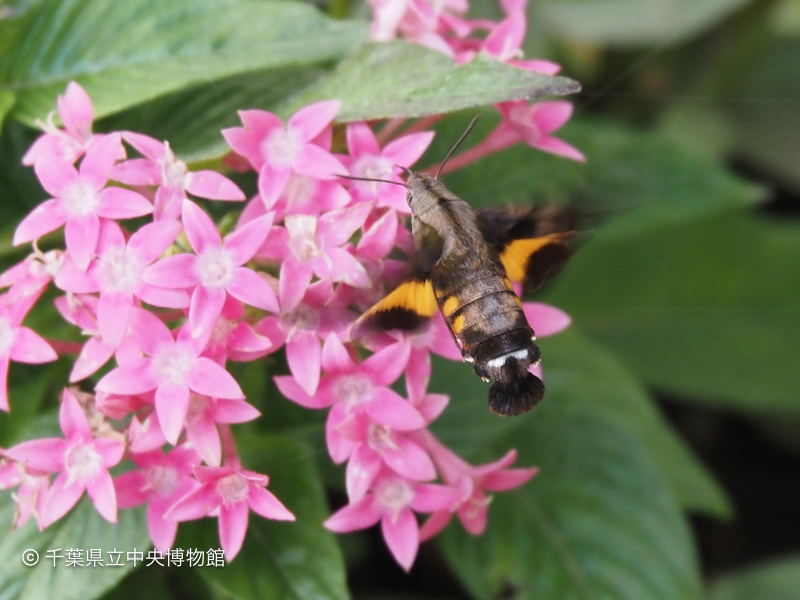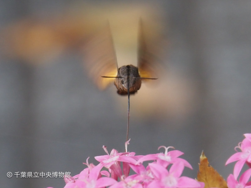 一覧にもどるイタリア橋の花壇に植えられたペンタスの花でホシホウジャクが吸蜜していました。羽ばたきながら空中で静止して長い口吻を花に差し込んでいます。