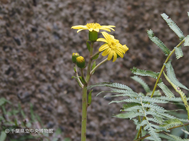 本館正面階段花壇に生えているツワブキの花が咲いています。