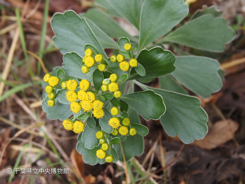 海岸植生の園路沿いに生えているイソギクの花が咲き始めました。