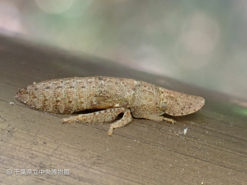 生態園外周の柵の上にいました。ヨコバイの一種、コミミズクの幼虫です。まるでカモノハシのようなフォルムです。幼虫で越冬します。