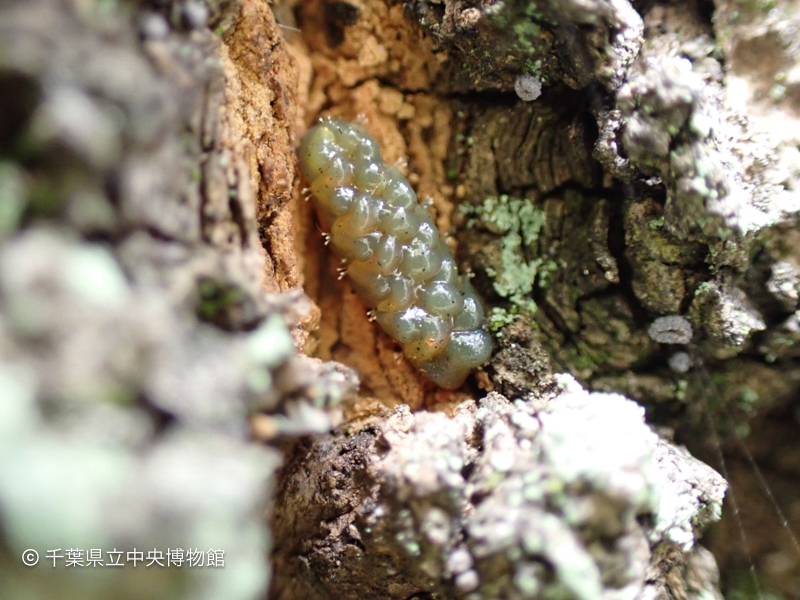 舟田橋脇に生えているクヌギの枝にクヌギカメムシがいました。同じ枝に産卵されていました。本種は卵で越冬します。