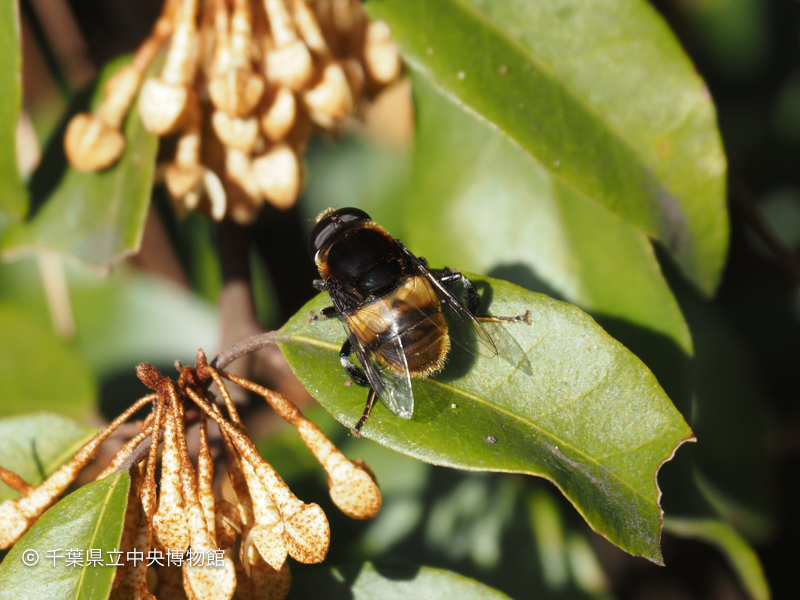 開花中のツルグミにオオハナアブがいました。「大花虻」という名に違い、ナミハナアブ等の他のハアアブと比べて大きくはありません。