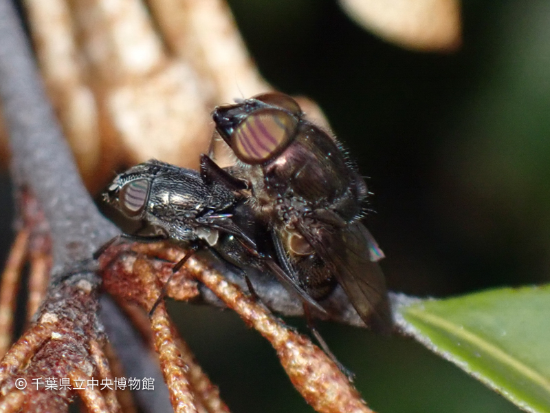 開花中のツルグミでツマグロキンバエが交尾していました。成虫で越冬するものと思われますが、繁殖行動は初冬に行うようです。産卵がいつなのかが気になります。