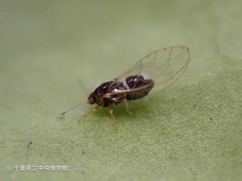 モチノキの葉裏でタイワントガリキジラミの成虫を見つけました。羽化して間もない個体だと思われます。