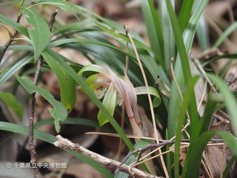 オリエンテーションハウス脇に生えているシュンランの花が咲いています。