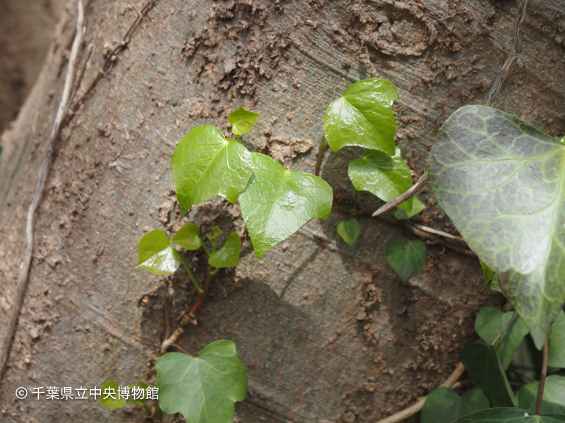 キヅタの新葉が開き始めました。鮮やかな緑色です。展開前の葉には軟毛が密生していますが、展開後には無毛になります。