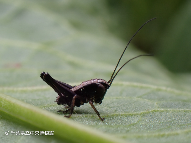 ススキ草地にはヒメギスの幼虫がたくさんいます。キリギリスの仲間ですが身体が黒いのが特徴です。まだ体長5ミリ以下の小ささです。