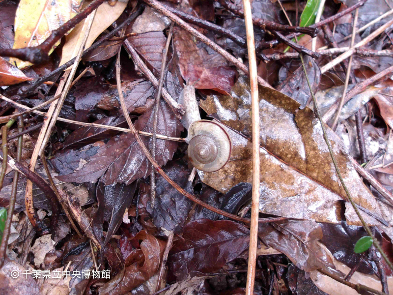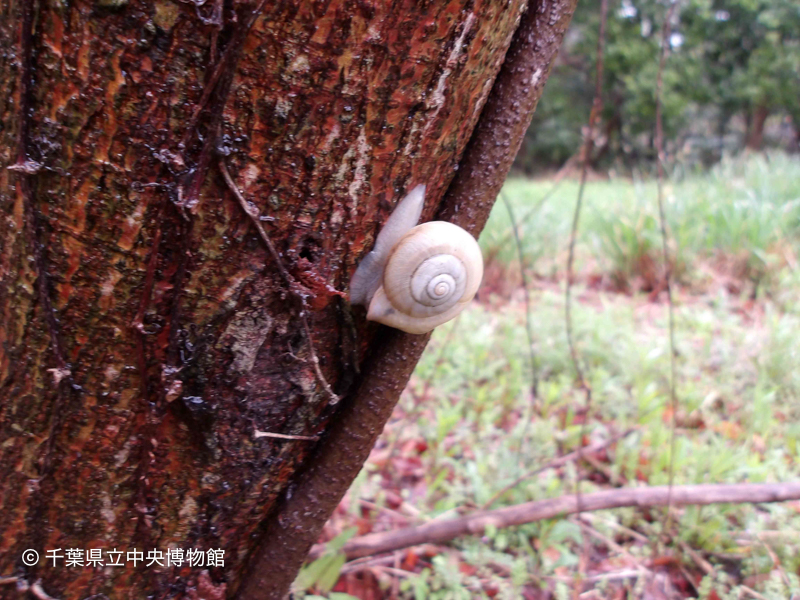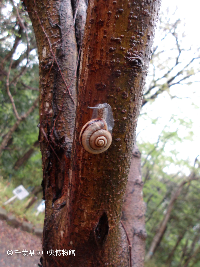 雨が降る午前中、生態園の色々な場所で陸生巻貝(カタツムリやキセルガイの一種)たちが活動していました。