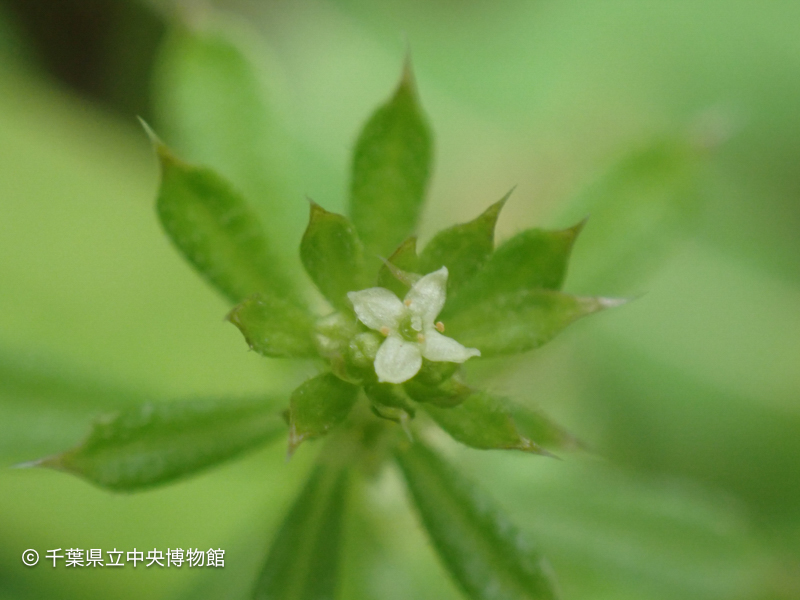 園路にたくさん生えているヤエムグラの花が咲いています。直径1ミリほどの小さな花です。