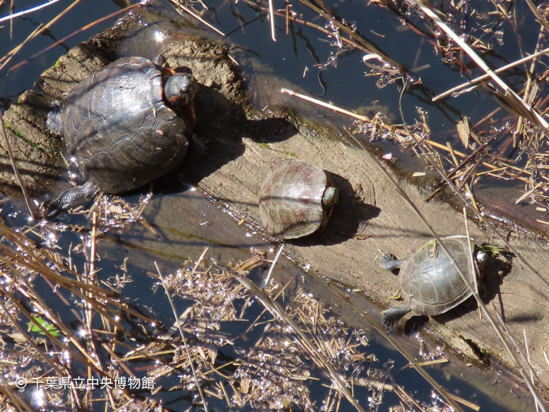 舟田橋直下の倒木の上に3頭が日光浴していました。うち1頭はかなり大型の♀。