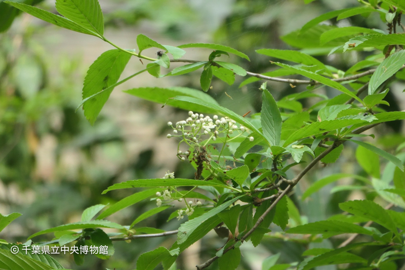 一覧にもどる新葉をこすって匂いを嗅ぐと、強いゴマの香りがします。花が咲き始めました。絡んでいるシロバナハンショウヅルとダブルで花が楽しめます。どちらもOB大野啓一さんの植栽植物です。