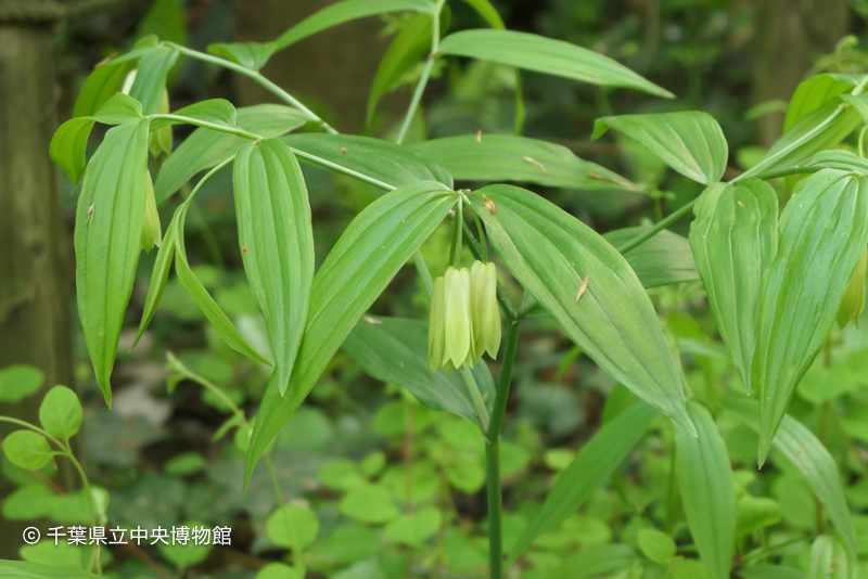 せせらぎ沿い園路に生えているホウチャクソウの花が咲きました。