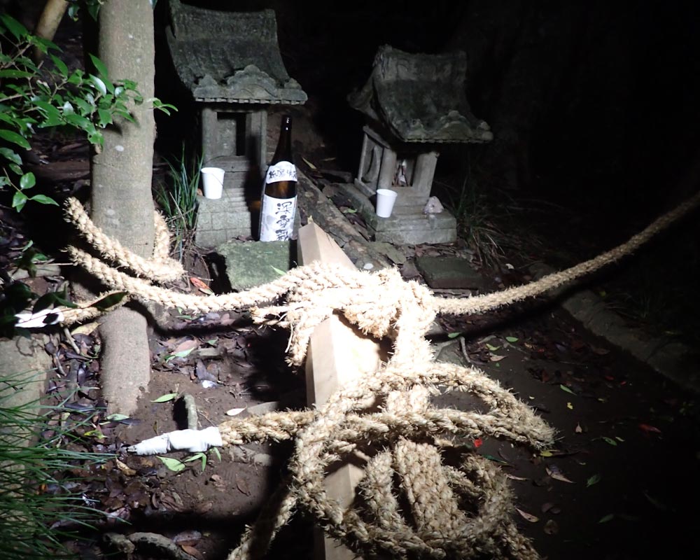今も、このお宅では天王様の石祠の前にオダチを置き、青年たちに赤飯とお神酒がふるまわれます。 -