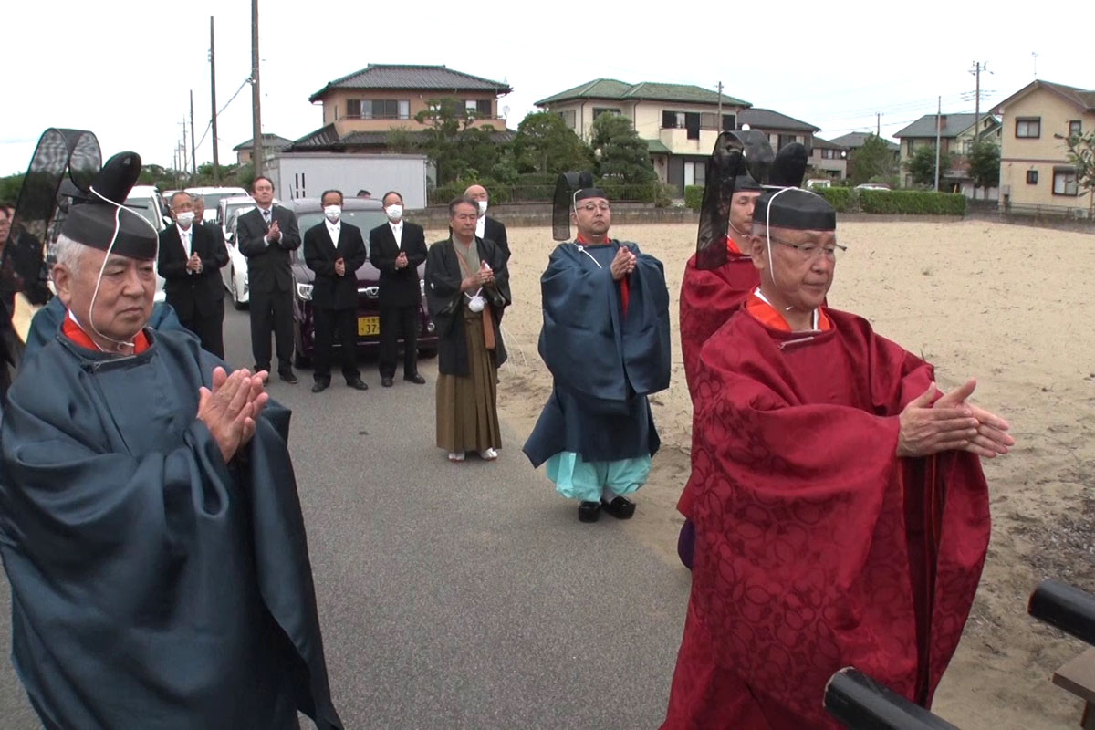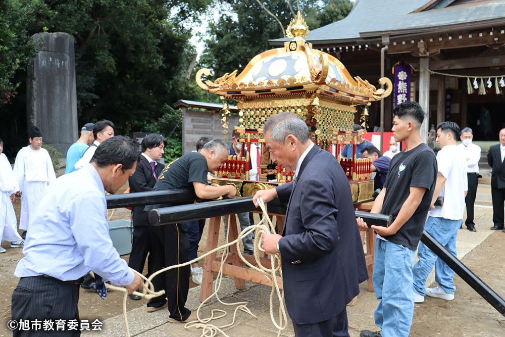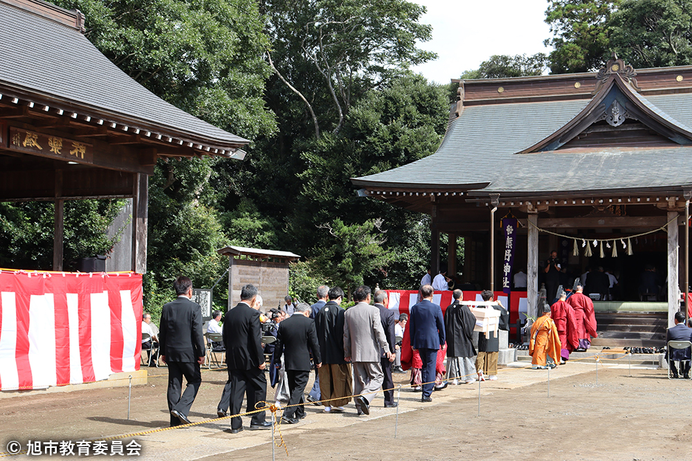 - 手水舎前の祓所で修祓を行い、再度行列を作って拝殿へ昇殿。献幣使は千葉県神社庁香取支部長がつとめた。
