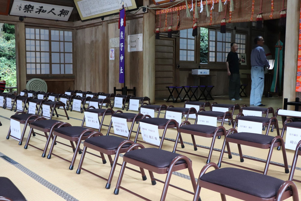 今回は供奉芸能が2団体に留まり、また祭礼後の「笠こわし」が取りやめとなったことなどから、会場を参道から境内に変更し、桟敷は設営は行いませんでした。 -