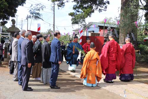 - 沿道首長(香取市長、東庄町長)、衆議院議員、県議会議員はじめとする参列者は受付後、手水舎前の祓所で手水を行い、昇殿した。