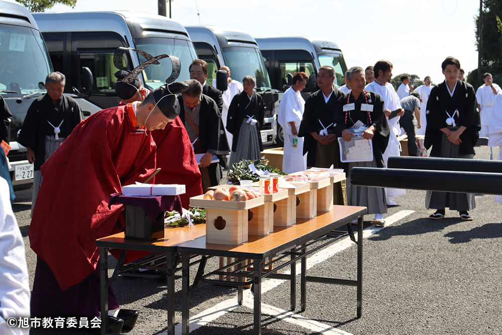 - 本来ならば神幸の前日に行うべきものですが、参列者の負担軽減のため足揃に続いて行われました。