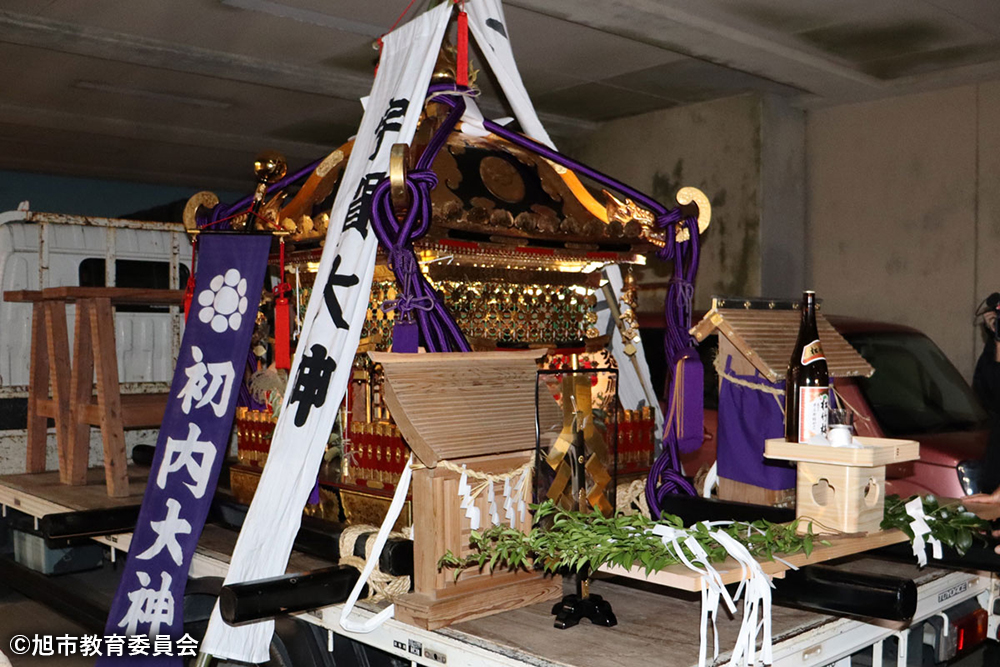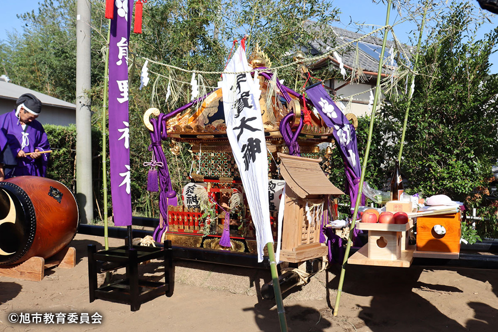 下座の後ろに宇賀神社のお宮(背負い神輿) - [諸徳持区]