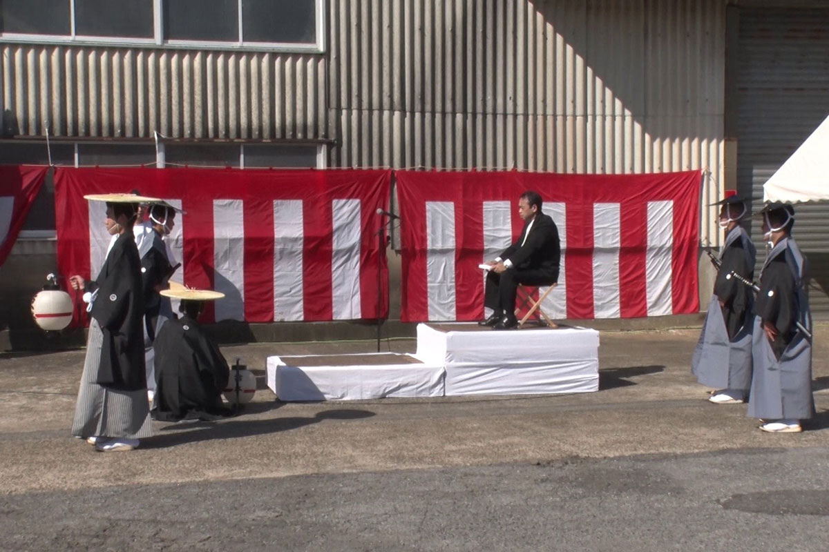 JAちばみどり海上中央支店の敷地を会場に、見広地区の番所が設けられました。門と本陣の設営はなく、通行許可の挨拶などは会場の中央の壇上で、見広区長が対応しました。
