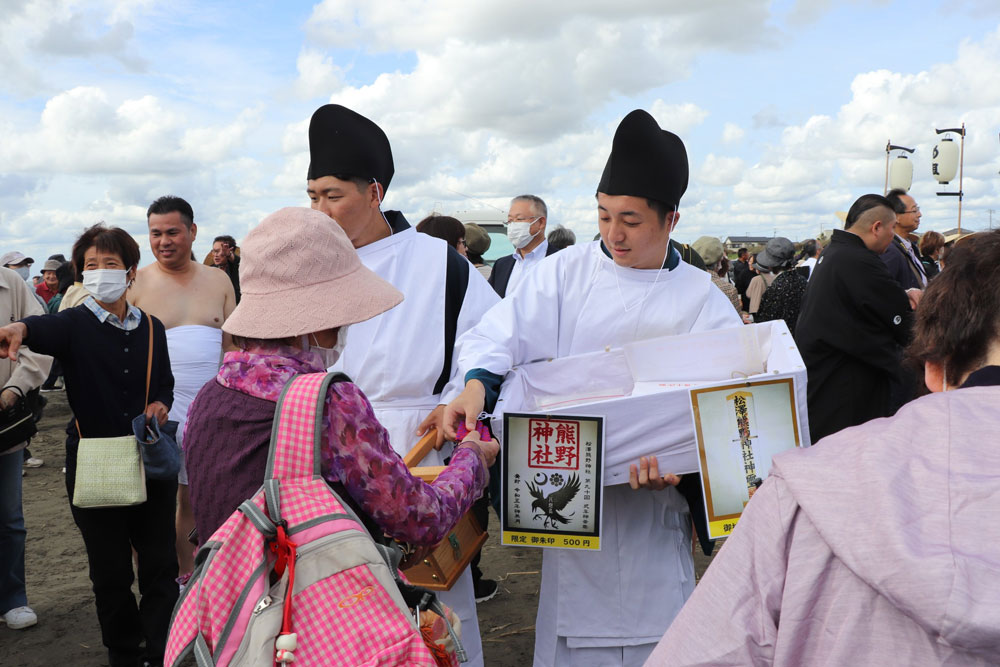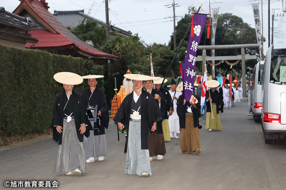 使者「このたび、熊野大御神、海上郡三川浦にご神幸につき、供奉一同まかり通る。よって区内安全のお札を、献上つかまつる」