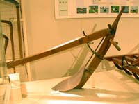 牛や馬に引かせて、田や畑を耕す道具です。千葉県佐原市で使われていたもので、動力の耕耘機が普及するまで使用されていました。