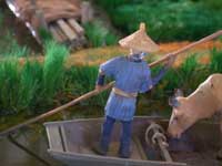 水郷の稲作 田植え サッパ舟に牛を乗せて 2