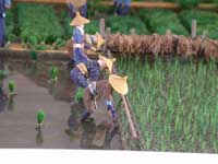 三角定規を使って田植えをしています。千葉県佐原市の十六島で