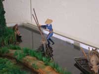 水車(みずぐるま)で水汲みをしました。水量や場所にもよるが、