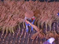 刈り取った稲を、結緒(ユッツオー)で結わえています。