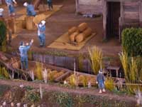 エンマから俵の積み出しをする様子を子どもが見ています。