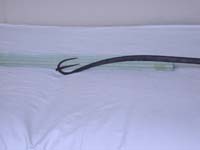 船べりから水底にウナギガマを突っ込み、泥の中のウナギを引っかけてとります。これは千葉県香取郡東庄町笹川で使用されていたものです。