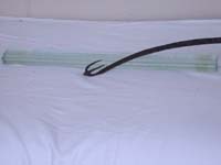 船べりから水底にウナギガマを突っ込み、泥の中のウナギを引っかけてとります。これは千葉県香取郡東庄町笹川で使用されていたものです。