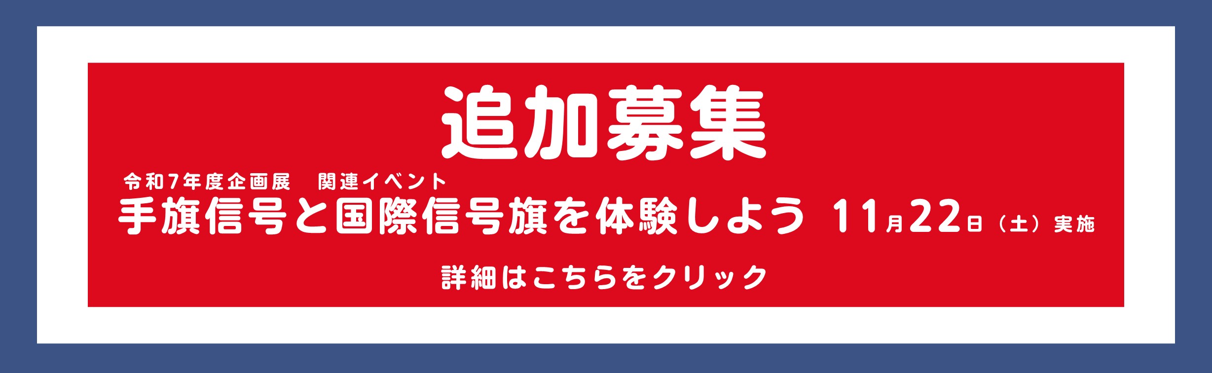 令和7年度企画展 関連イベント 「手旗信号と国際信号旗を体験しよう」(11月22日(土)実施)の事前申し込み延長のお知らせ(電話予約)