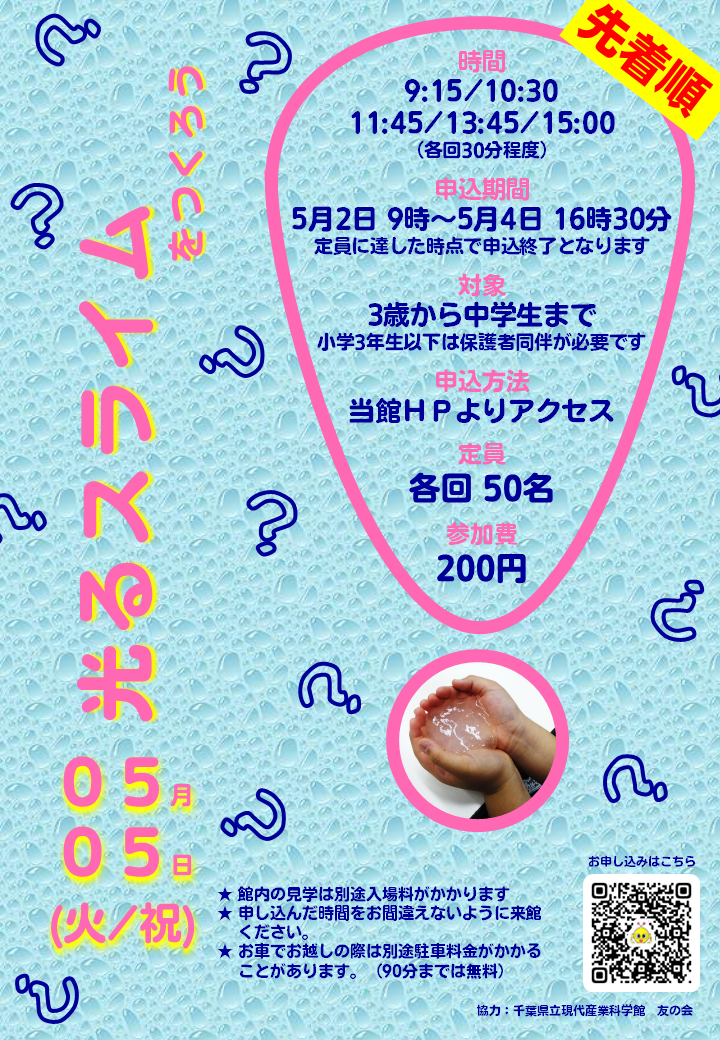 光るスライムをつくろう(5月5日(火・祝)実施)のお知らせ