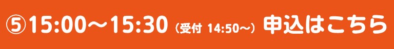 ①9:15~9:45 受付 9:05~ ②10:30~11:00 受付10:20~ ③11:45~12:15 受付11:35~ ④13:45~14:15 受付13:35~ ⑤15:00~15:30 受付14:50~ |