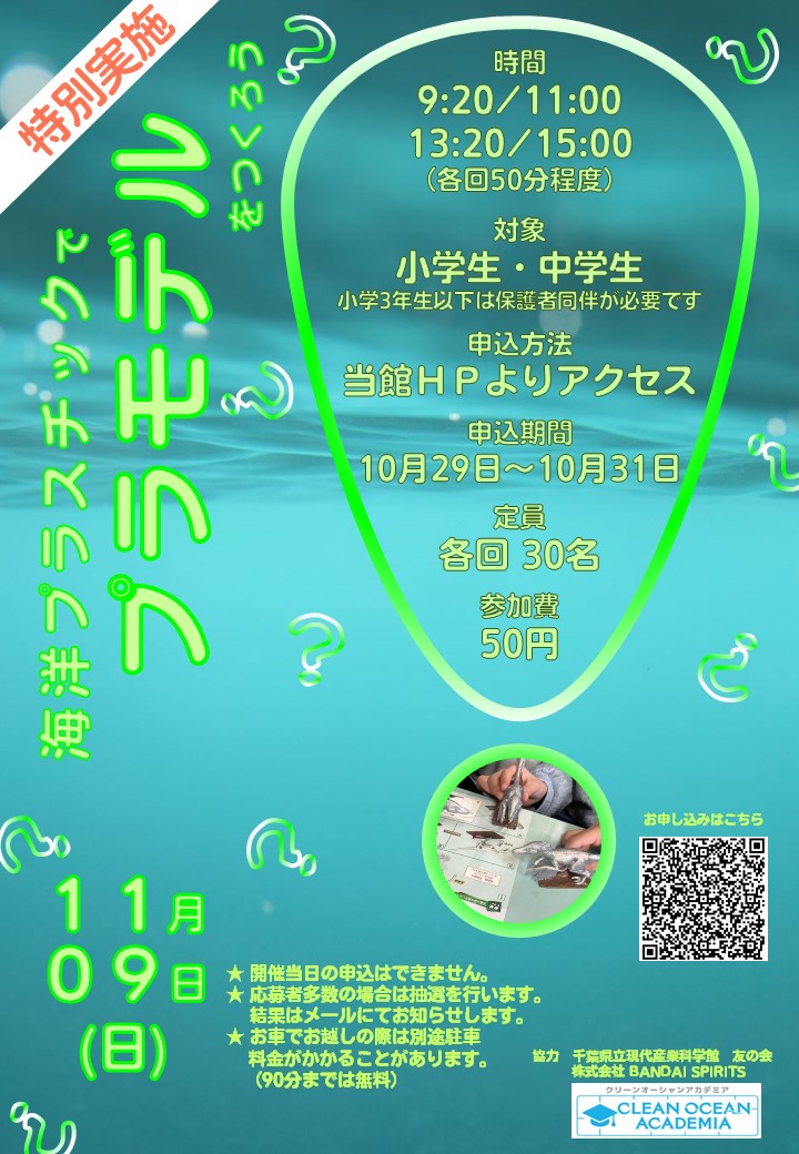 【特別実施】海洋プラスチックでプラモデルをつくろう(11月9日(日)実施)のお知らせ