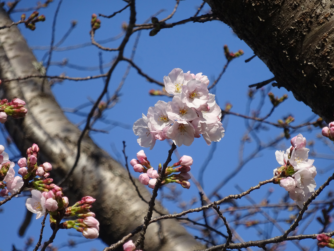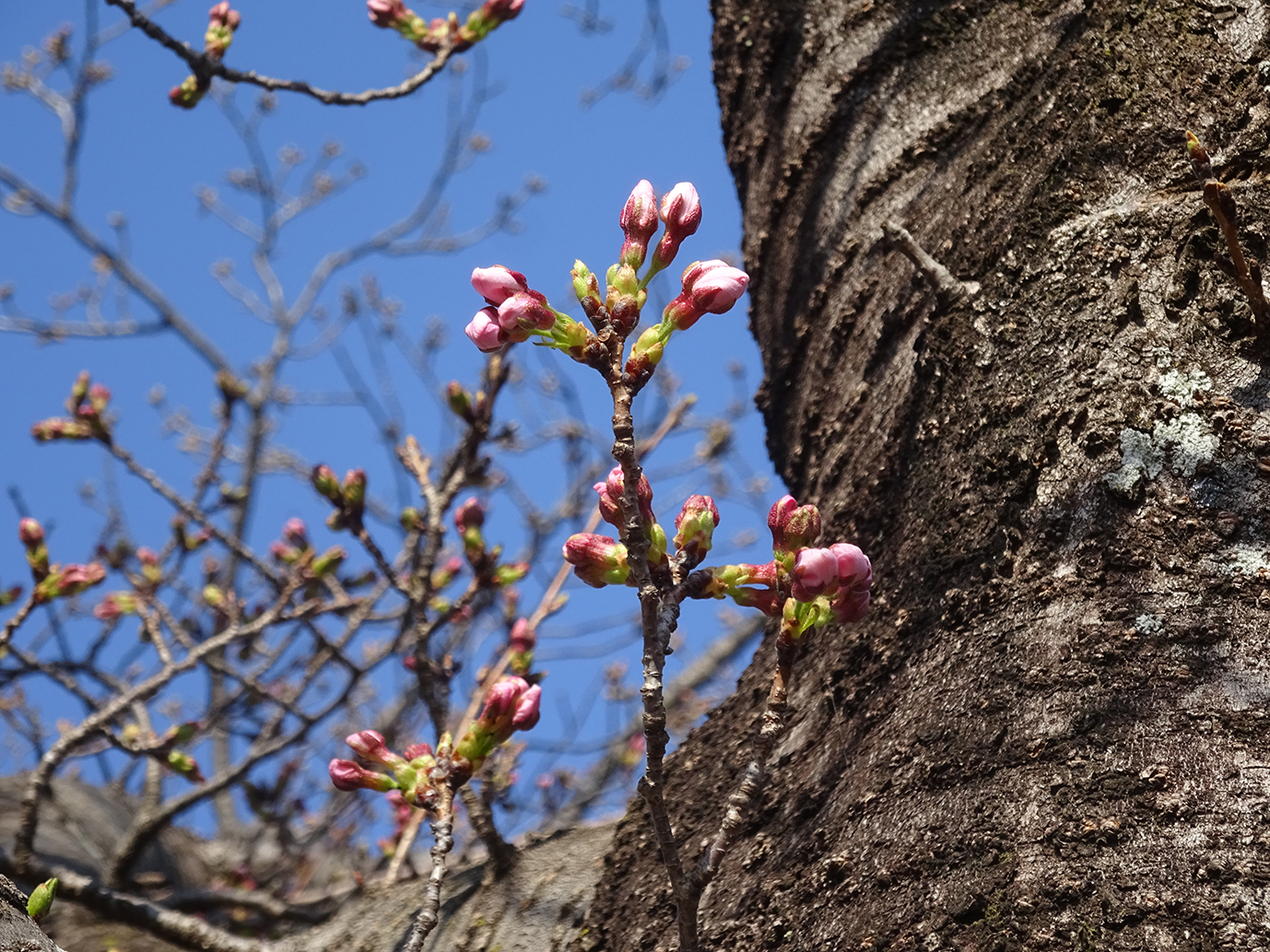 博物館周辺の桜の花は、蕾が膨らみピンクに色づいて来ました。 |